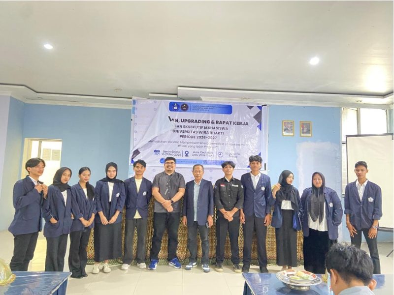 Majelis Permusyawaratan Mahasiswa Universitas Wira Bhakti Periode 2025-2026 menyelenggarakan rangkaian kegiatan penting dalam memperkuat kepengurusan Badan Eksekutif Mahasiswa (BEM) periode 2026-2027 melalui acara Pelantikan, Upgrading, dan Rapat Kerja yang berlangsung pada tanggal 16 Februari 2026 di Aula Gedung B Lt.2.